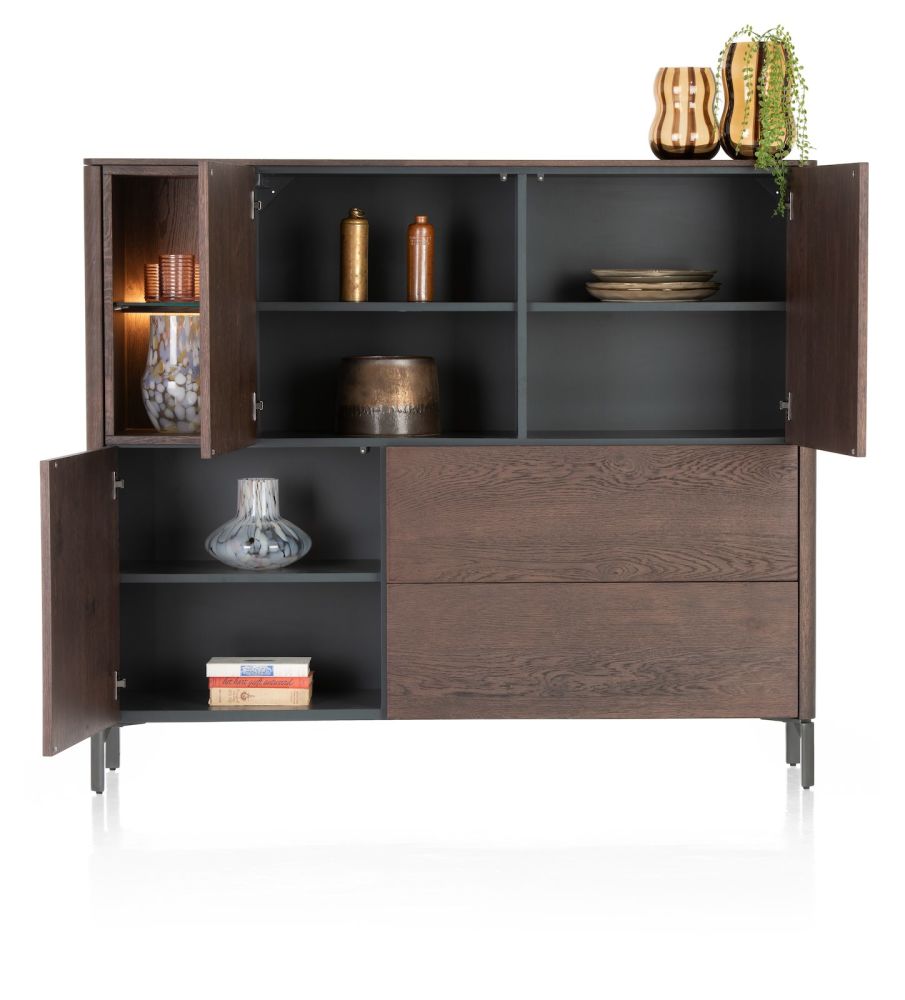 Valgard, highboard 120 cm – 2-deuren + 2-laden + 2-niches (+ LED)