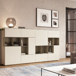 Met het grote aantal elementen, materialen zoals gladde matlak, handgepolijste hoogglanslak, glas, keramiek, mooi natuurlijk eikenhoute of amerikaans noten, 16 standaard lakkleuren worden deze meubelen geheel afgestemd op uw behoeften en smaak.