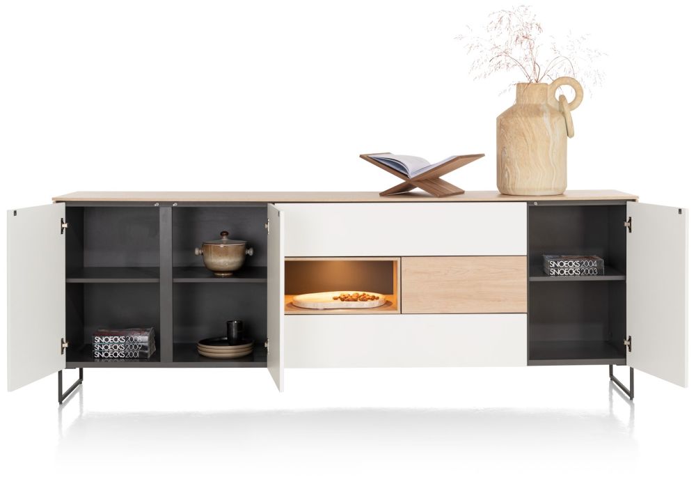 Pavarotti, dressoir 230 cm – 3-deuren + 2-laden + 2-niches (+ LED)