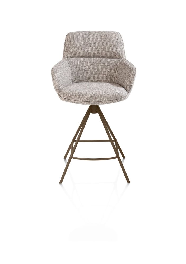 Mischa, barstoel – swing vierkant + greep – stof Karese – koper