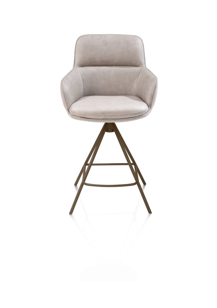 Mischa, barstoel – swing rond + greep – stof Karese – koper