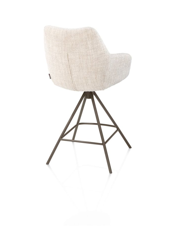 Mischa, barstoel – swing rond + greep – stof Karese – Olijf
