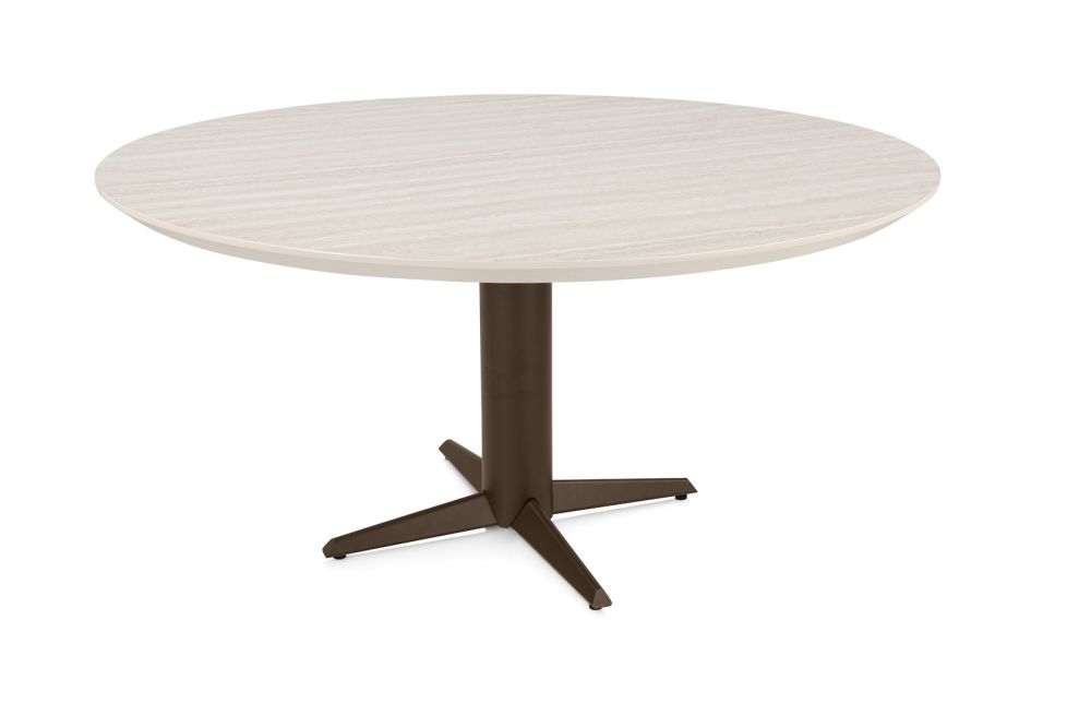 Caletta, eetkamertafel rond 150 cm. – HPL Primo Laminato blad – centrale teenpoot steelbrown – Travertin