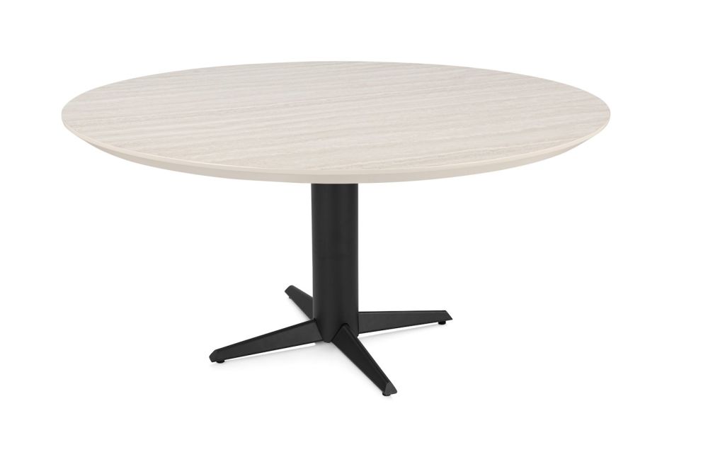 Caletta, eetkamertafel rond 150 cm. – HPL Primo Laminato blad – centrale teenpoot zwart – Travertin