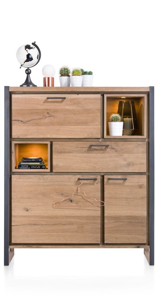 Metalo, buffet haut 2-portes + 1-tiroir + 1-porte abattante + 2-niches (+LED)