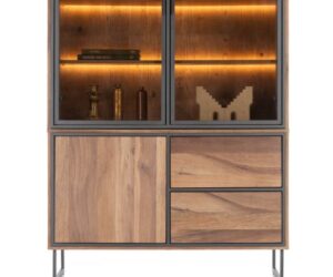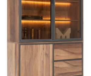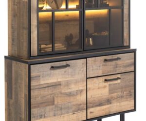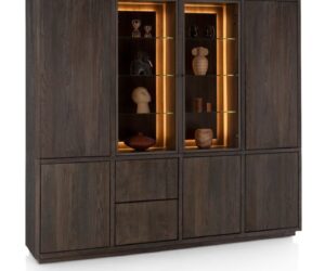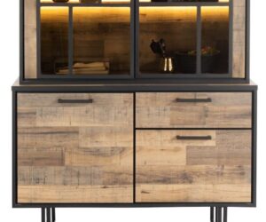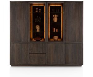 Farmland, vaisselier 150 cm – 1-porte + 2-portes de verres + 3-tiroirs +LED
