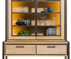 Henders & Hazel revisite le vaisselier traditionnel avec ce modèle de la collection Farmland en bois de chêne et chêne plaqué. Notez les détails métalliques qui soulignent son allure robuste. Ce meuble est doté de deux vitrines avec éclairage LED, d’un espace avec porte et de trois tiroirs. Un atout à la fois élégant et pratique pour votre intérieur.