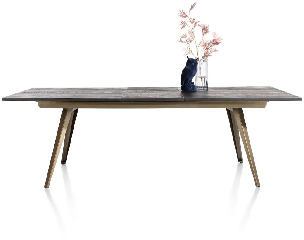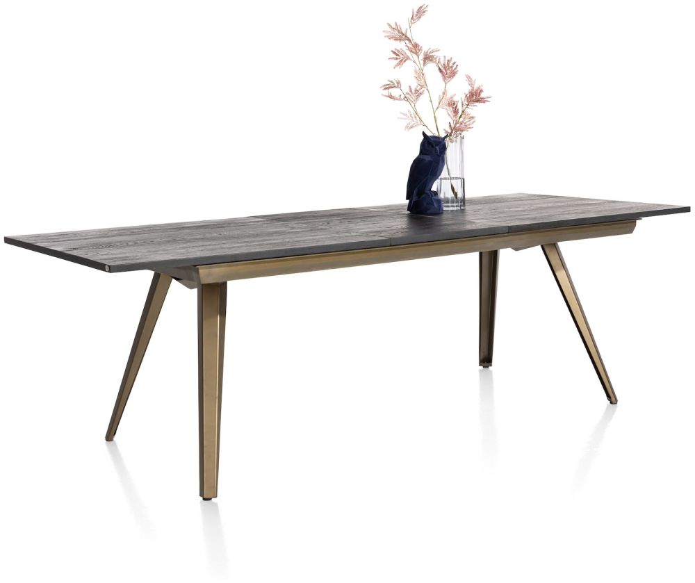 Les tables extensibles sont idéales si vous invitez régulièrement des convives, mais que vous manquez d’espace pour une grande table. Bien entendu, la collection City propose un assortiment de tables à manger extensibles. Ce modèle est doté d’un plateau en chêne plaqué de teinte Castle anthracite et de pieds Champagne Gold. Cette version existe dans deux dimensions : 190 cm x 100 cm et 160 cm x 100 cm. Les deux s’allongent de 50 cm en toute facilité.