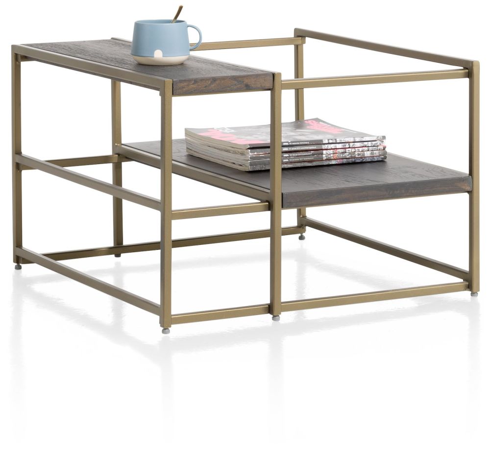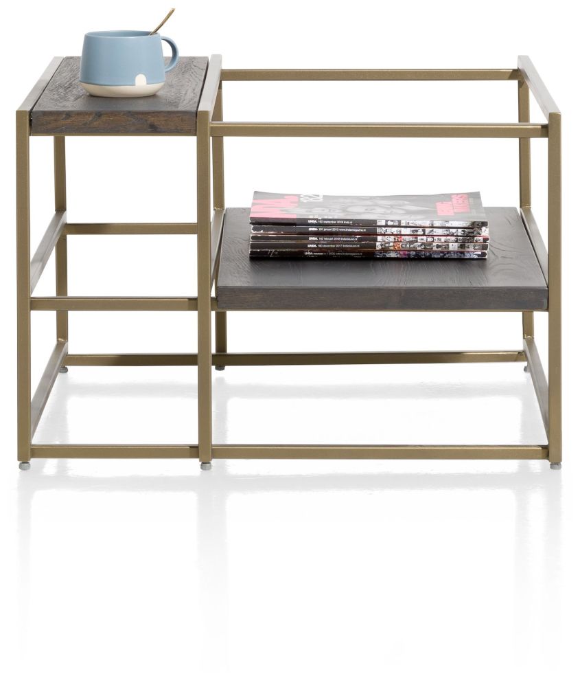 Si vous aimez les objets marquants dans votre intérieur, qui sont également fonctionnels, alors ce bout de canapé de la collection City est un must. La table mesure 60×60 cm et a un design original. Le plateau de table est en placage de chêne dans la couleur castle anthracite. Les parties métalliques sont de couleur dorée. Combinés, ils créent un look industriel élégant.