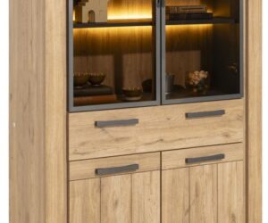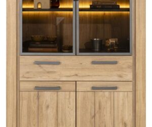 Livada, vitrine 100 cm – 2-portes en verre + 2-tiroirs – Natural