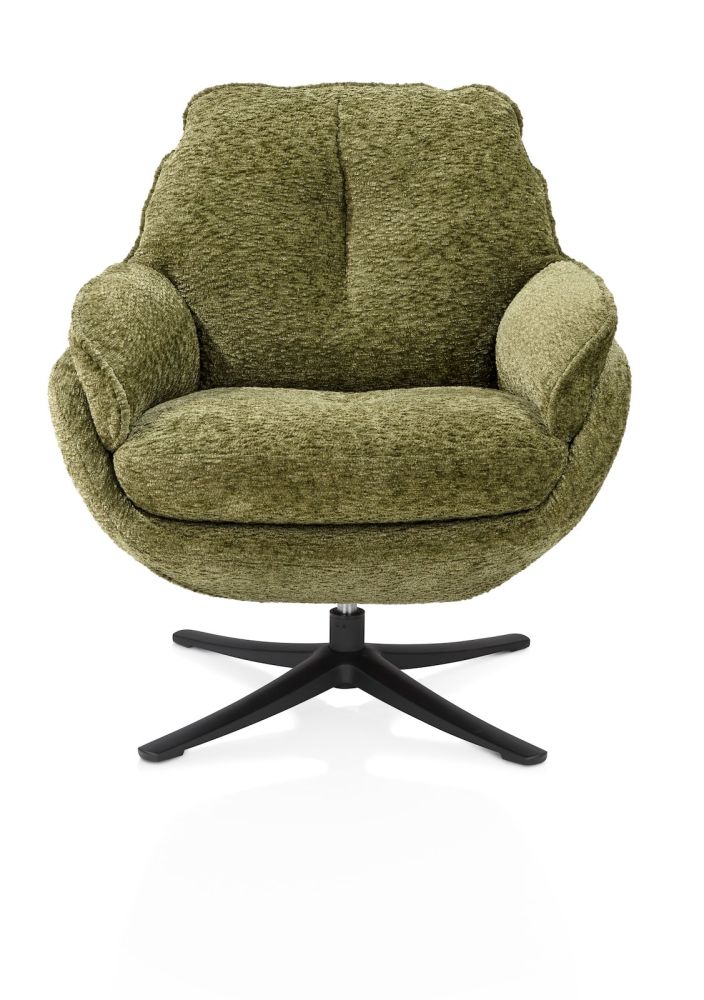 Densa, Fauteuil pivotant en tissu Valencia, pied en métal noir – Olive