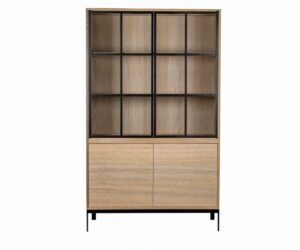Ce highboard de la collection Ridgefield est disponible en couleur castle anthracite ainsi qu’en couleur chêne naturel. Ce meuble en placage de chêne offre un bon équilibre entre rangement et exposition, avec à la fois des compartiments ouverts avec éclairage LED et des armoires de rangement. Le meuble mesure 140 cm de haut et 125 cm de large et constitue le complément parfait aux autres meubles de cette collection. Le design des pieds sous les meubles est particulièrement remarquable. Cette version provient de la collection Ridgefield Dark.