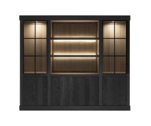 Cette vitrine de la collection Pavie est fabriquée en couleur bois naturel, mais propose également une variante en castle black industriel. Cette vitrine de 100 cm de large existe avec des pieds en métal noir (215 cm de haut) ou sans (205 cm de haut). Sur la partie supérieure, l’armoire est dotée de deux grandes portes vitrées, d’un petit et d’un grand compartiment ouvert au milieu, et en-dessous, de deux grandes portes avec lattes. Ces dernières offrent un énorme espace de rangement.