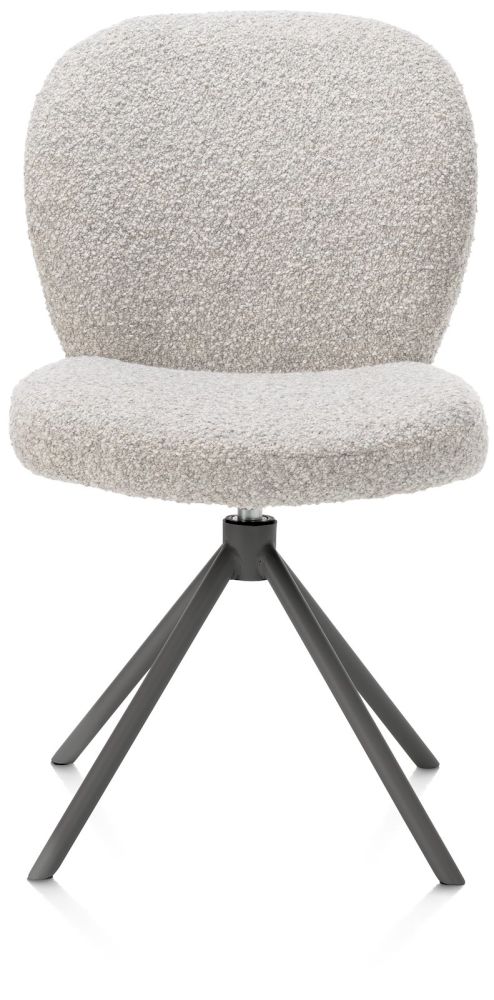 Vous êtes à la recherche d’une chaise de salle à manger douillette aux formes rondes ? Voici JAXON, une chaise douce comme un nuage. JAXON se décline en trois couleurs, dont ce splendide modèle de couleur caillou. Le tissu bouclé grossier Brioni est très doux et, combiné aux autres couleurs, il aura l’air très décontracté autour de votre table. Cette chaise pivote à 180 degré avec fonction retour, ce qui la rend très pratique. JAXON est équipée d’un piètement central de 4 pieds de couleur graphite. Découvrez également la chaise avec accoudoir JAXON !