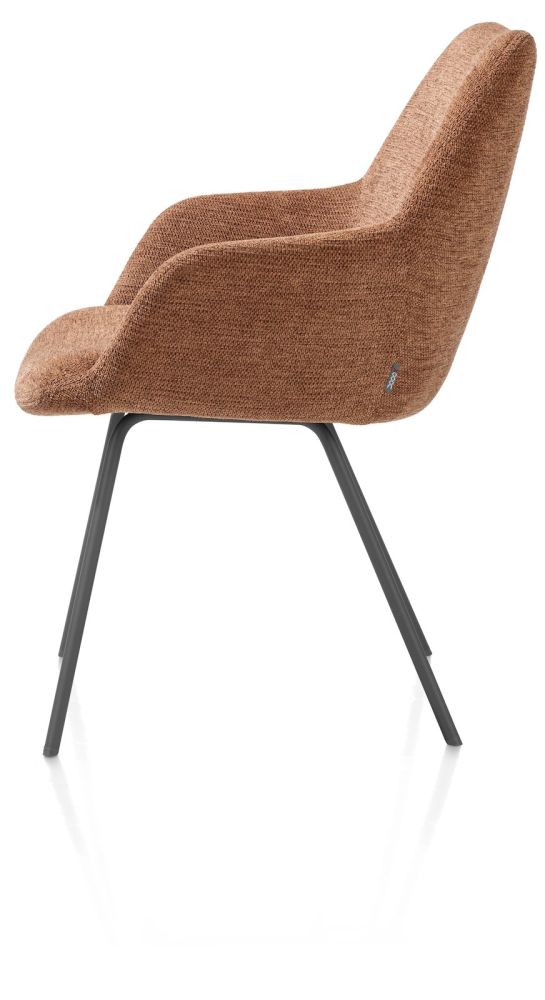 Vous êtes à la recherche d’une élégante chaise à accoudoir de couleur cuivre ? Laissez-vous surprendre par ODIN, une splendide chaise recouverte du beau tissu Vada. ODIN est dotée d’un piétement étroit en métal graphite qui lui donne un peu plus de peps. Découvrez les autres couleurs et piétements disponibles pour cette chaise ! Allez-vous choisir une seule couleur ou plutôt un mélange autour de votre table ?
