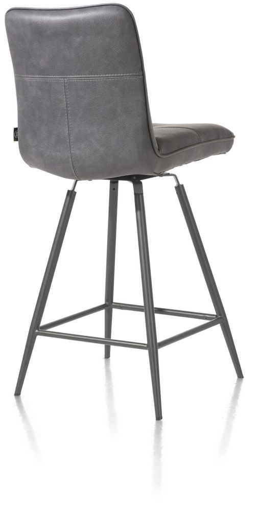 Cette chaise de bar moderne Milva repose sur un cadre en métal noir robuste. Très pratique, le système pivotant permet de tourner facilement la chaise sur le côté. Ainsi, vous pouvez descendre du tabouret sans difficulté.