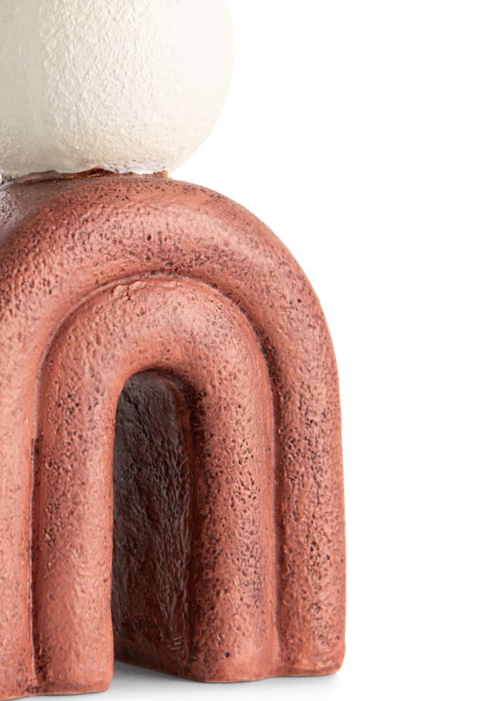 LOT, le bougeoir en polyrésine de COCOmaison existe en deux modèles : celui-ci, brun-rouge avec du crème et un modèle crème avec du brun-rouge. Les deux font 16 cm de haut et arborent un design moderne et épuré, mais avec une touche de fantaisie : vous y verrez peut-être un petit personnage. Ce bougeoir est conçu pour une longue bougie étroite, et sera du plus bel effet combiné à son ‘frère’.