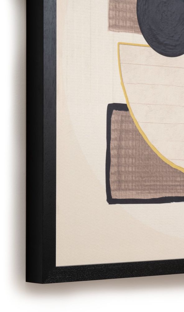 Le magnifique tableau Encounter de COCOmaison présente une impression abstraite avec différentes formes dans des tons crème. Le tableau mesure 100 x 100 cm et est livré avec un cadre en bois épais, ce qui vous permet de l’accrocher directement au mur. L’impression moderne est réalisée sur un tissu en velours 100% polyester, ce qui confère au tableau un effet insonorisant. L’artiste derrière ce tableau est Irene van Ophoven.