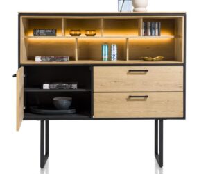 Cette armoire de Henders & Hazel fait partie de la collection Shimanto, une collection à l’apparence naturelle. Les armoires sont fabriquées en chêne plaqué de couleur Bright Natural Oak. Sur cette armoire, on remarque le design subtil aux lignes droites, les fines poignées et les pieds incrustés de bois. Tous contribuent au caractère naturel de la collection Shimanto. Cette armoire possède 3 petites portes et une grande ainsi qu’un compartiment au milieu gauche subtilement éclairé par un éclairage LED intégré. Cette armoire mesure 100 cm de large et 190 cm de haut. Elle est donc idéale pour tous ceux qui disposent d’une pièce étroite mais ont quand même besoin d’espace de rangement !