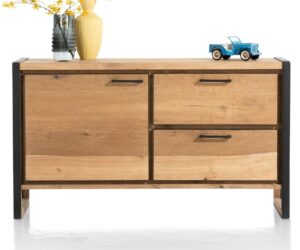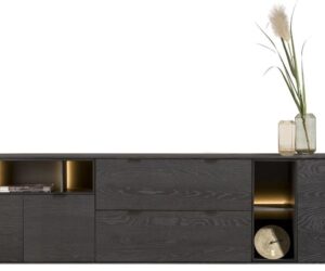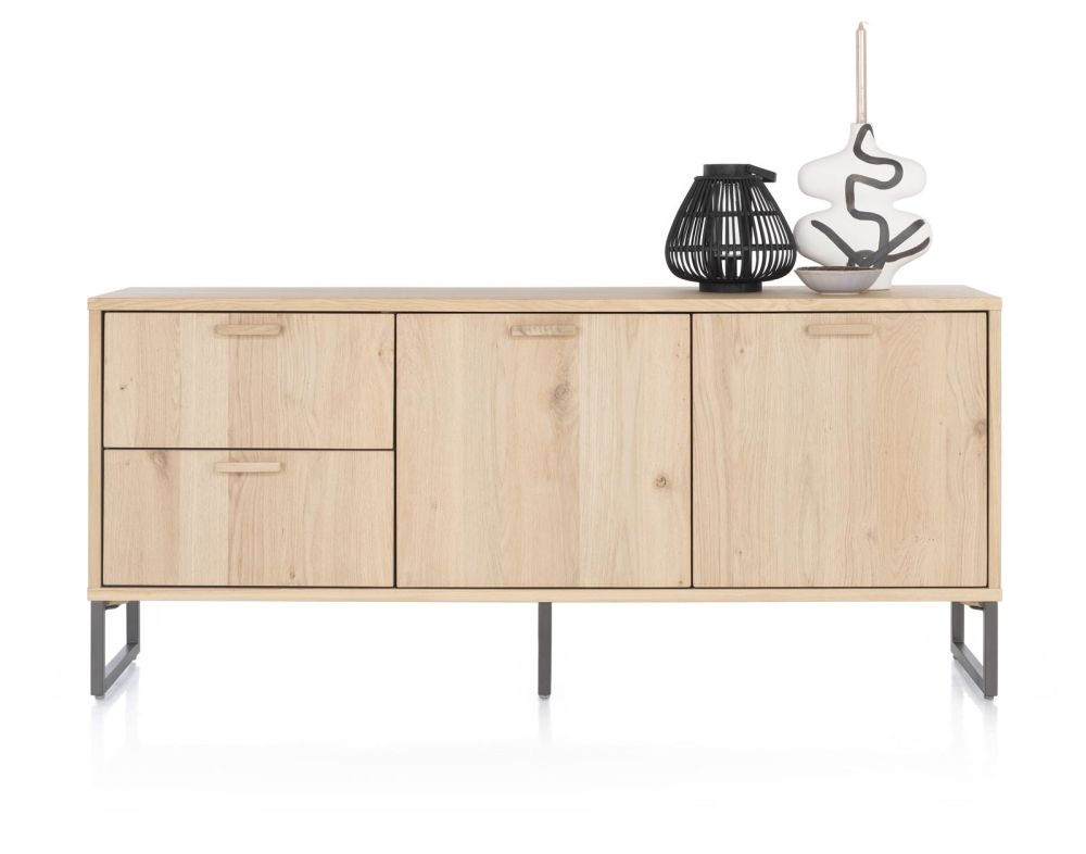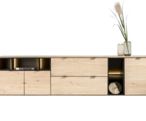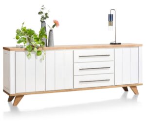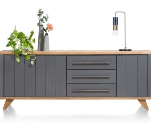 La collection Castello a un look scandinave grâce à l’utilisation de chêne clair de couleur sand oak. Cette collection comprend 4 buffets de différentes tailles. Voici le buffet de 181 cm de large et 80 cm de haut. Le buffet a exactement la même hauteur que les autres buffets de cette collection. Vous pouvez ainsi créer une longue paroi de buffets. Les portes des buffets sont équipées de poignées en bois et les buffets reposent sur des pieds en métal de couleur graphite. Toutes les portes des armoires sont dotées d’un système de fermeture en douceur.