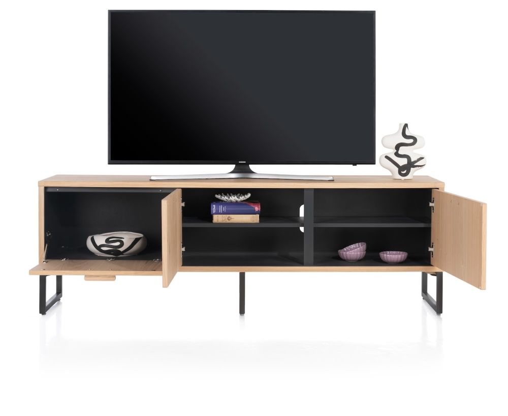 Le look scandinave est caractéristique de la collection Castello. Grâce à l’utilisation de chêne clair de couleur sand oak, la collection a une apparence très naturelle et pure. Cette collection comprend 3 lowboards pratiques de différentes tailles. Voici le lowboard de 181 cm de large et 60 cm de haut. Les lowboards ont tous exactement la même hauteur. Vous pouvez ainsi créer une longue paroi de meubles TV. Les portes de tous les meubles sont équipées de poignées en bois et reposent sur des pieds en métal de couleur graphite. Toutes les portes des armoires sont dotées d’un système de fermeture en douceur. De plus, les lowboards sont équipés d’un système pratique de gestion des câbles.