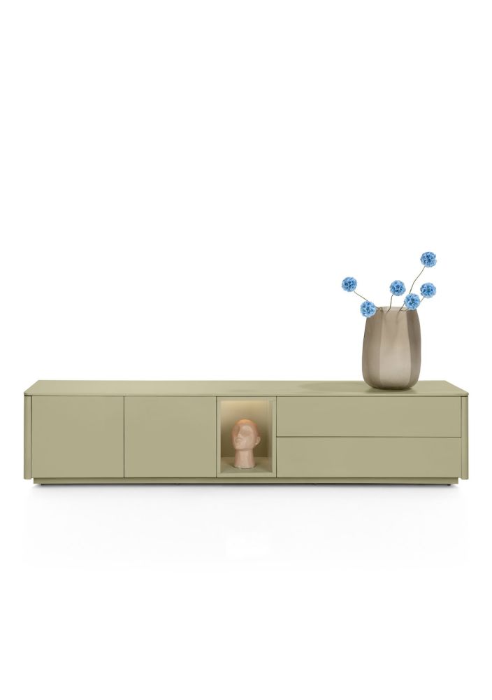Trentino, Lowboard 210 cm. – 2 portes + 2 tiroirs + 1 niche – mdf laqué – Olive