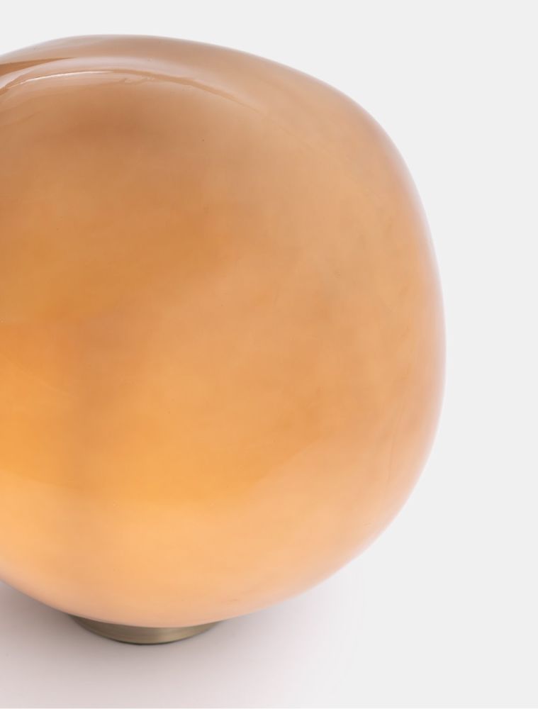 La lampe de table Abby de COCOmaison s’inscrit parfaitement dans la tendance des formes naturelles. La forme de cette lampe s’inspire clairement d’un galet, mais agrandie à une taille de 33 x 27 x 30 cm (l x h x p). La lampe elle-même est en verre brun clair, ce qui lui confère une belle lueur chaude lorsqu’elle est allumée. Cette forme repose sur un petit pied doré. Ce qui est particulièrement appréciable, c’est que la lampe est dimmable, ce qui la rend adaptée à la fois à l’éclairage d’ambiance et à l’éclairage fonctionnel. Une suspension et un lampadaire font partie de la même série Abby.