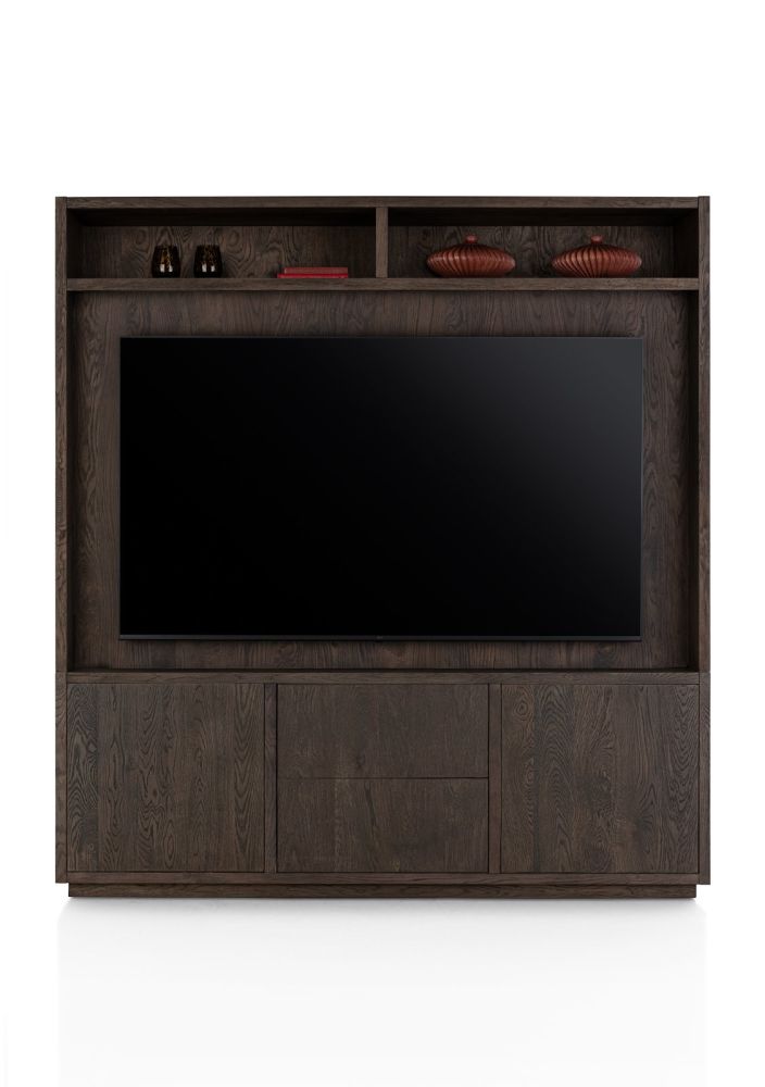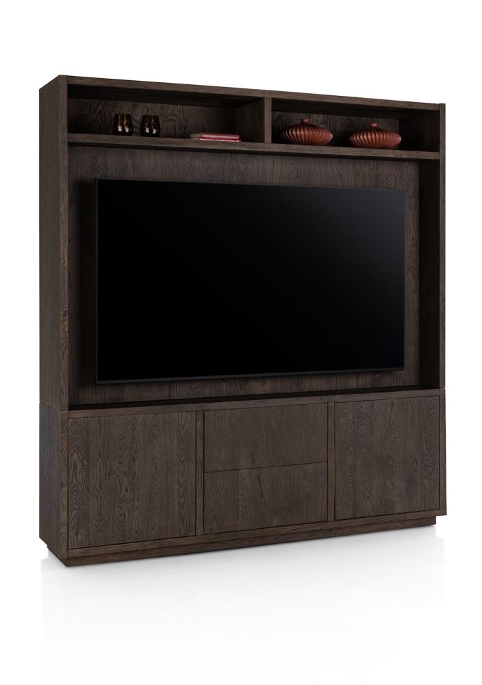 Gijon, meuble tv + partie haute 200 cm – 2-portes + 2-tiroirs + 2-niches + plinthe