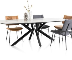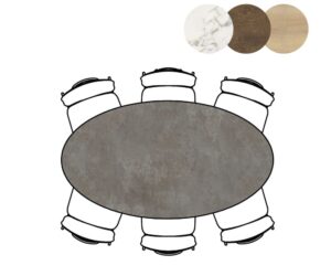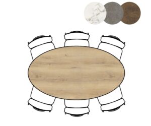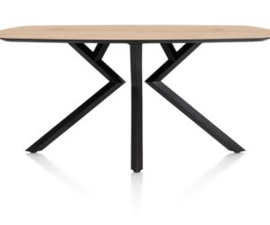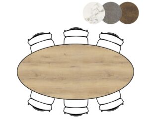 Ni droit, ni rond, mais ovale est la forme du plateau de cette table de bar de la collection Avalox. La table mesure 180x110cm, d’autres tailles et variantes sont disponibles. Le plateau est fabriqué dans le matériau Primo L-Laminato, solide et facile à entretenir qui a l’apparence du bois. L’aspect bois est mis en valeur par la finition en bois flotté ou en chêne naturel vintage. Pour les pieds de la table en métal noir, vous avez le choix entre : un pied en V ou quatre pieds.