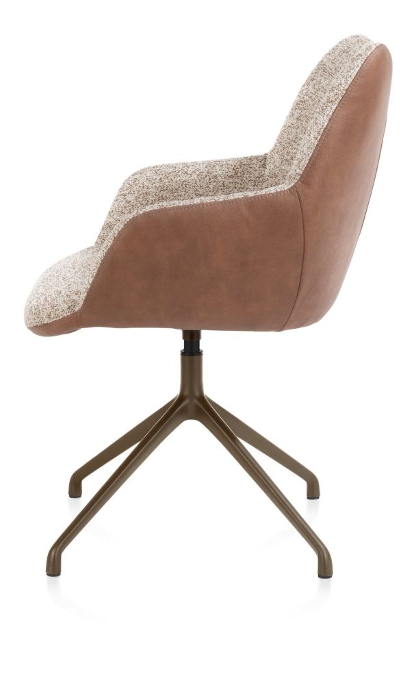 Mats, chaise à acc. – piétement aluminium 4 pieds steelbrown -pivotante – Pala cognac + Luton cuivre