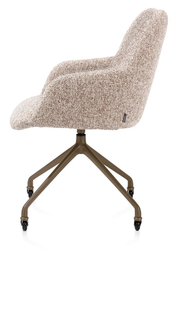 Mats, chaise à accoudoirs – piétement aluminium steelbrown + roulettes – tissu Luton – cuivre