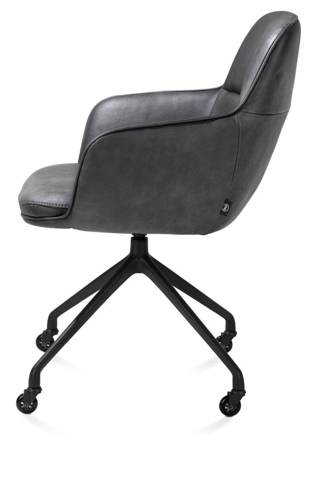 Mateo, chaise à accoudoirs – roulettes – rough off black – Pala – Anthracite