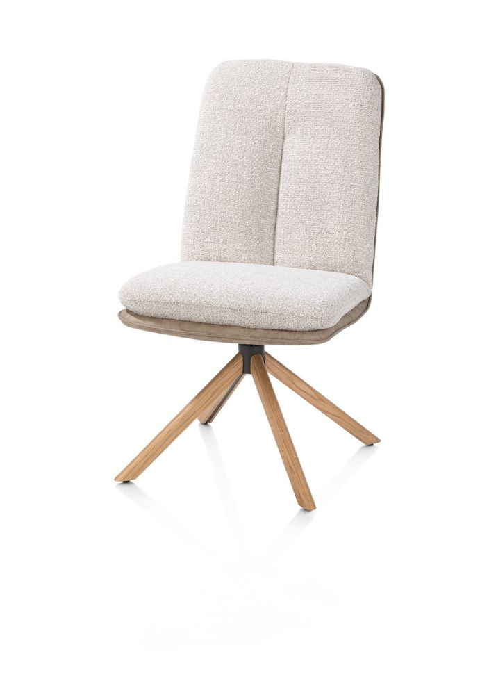 Theros, Chaise de salle à manger 4 pieds en chêne naturel – pivotante – tissu oregon/séville – beige