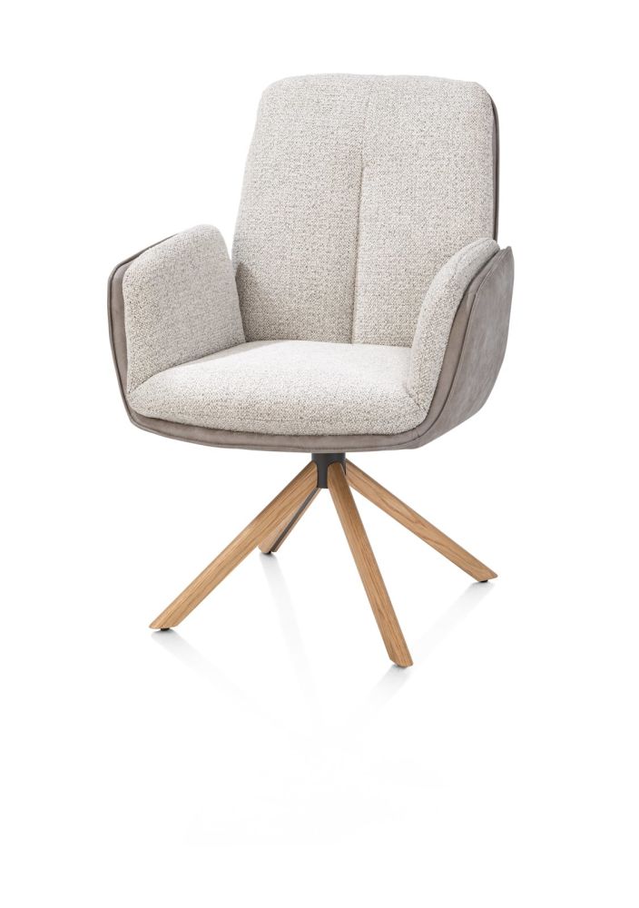 Theros, Fauteuil 4 pieds chêne naturel – pivotant – tissu oregon/séville – Caillou