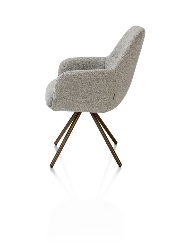Optez pour un style de salle à manger moderne et chaleureux avec la chaise à manger MAVIS en tissu Cloudy olive. Ce fauteuil confortable, revêtu d’un tissu bouclé doux, est doté de ressorts ensachés pour un confort d’assise optimal. Le piètement steel brown apporte une touche contemporaine, tandis que le mécanisme pivotant à 180° avec retour automatique offre une grande praticité. La teinte olive élégante fait de MAVIS une pièce maîtresse dans tout intérieur moderne. Disponible également en beige et ocre.
