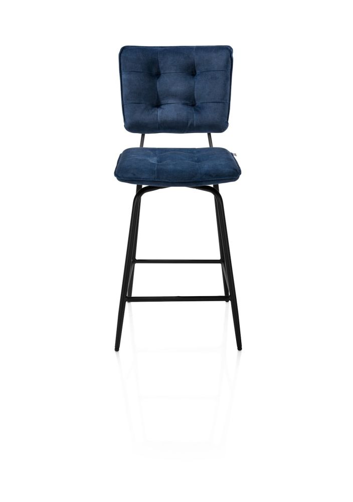 Manou, chaise de bar haut – off black – tissu Karese – Bleu fonce