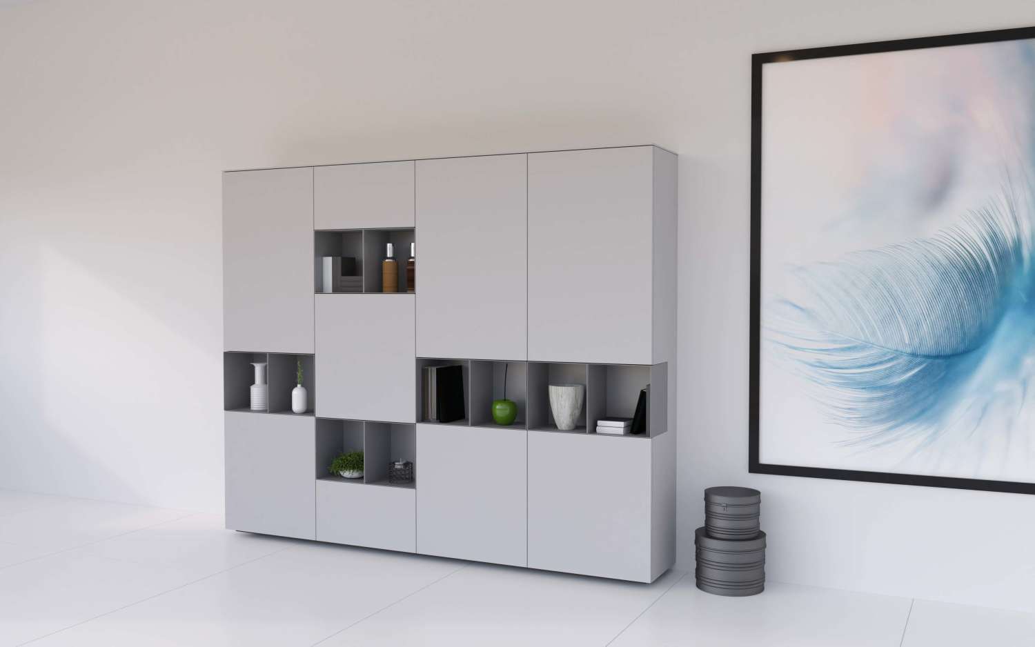 Avec le grand nombre d’éléments, de matériaux tels que la laque mate lisse, la laque brillante polie à la main, le verre, la céramique, le bel chêne naturel ou le noyer américain, 16 couleurs de laque standard, ces meubles sont entièrement adaptés à vos besoins et à votre goût.