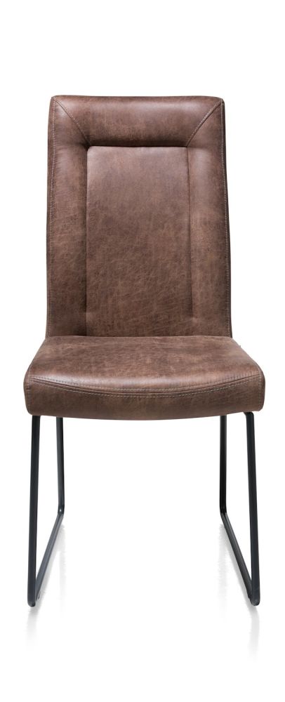 Deze stoere eigentijdse eetkamerstoel Malvino is voorzien van een handig detail. Op de rugleuning is een praktische ronde handgreep aangebracht. Dit voorkomt vlekken van eventuele vieze vingers op de rugleuning bij het verschuiven van de stoel. Een ander opvallend item aan deze stoel is het zwart metalen tube frame. Dat geeft de stoel een strakke uitstraling. Voor de bekleding kan je uit diverse soorten en kleuren leer kiezen.