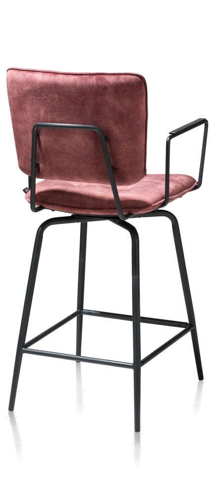 Ben je op zoek naar een moderne barstoel met armleuningen en een luxe uitstraling? Dan is barstoel Manou een aanrader. Deze toffe barstoel is 102 cm hoog en heeft een metalen frame in de kleur off black. Opvallend zijn de gecapitonneerde zitting en rugleuning. Zijn vintage look dankt hij aan de stof Karese, die op velvet lijkt. De kleur van de stof is burgundy red, maar andere kleuren zijn ook mogelijk.