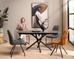 €249,00 Manou, barstoel met armen – off black – stof Karese – Burgundy red Ben je op zoek naar een moderne barstoel met armleuningen en een luxe uitstraling? Dan is barstoel Manou een aanrader. Deze toffe barstoel is 102 cm hoog en heeft een metalen frame in de kleur off black. Opvallend zijn de gecapitonneerde zitting en rugleuning. Zijn vintage look dankt hij aan de stof Karese, die op velvet lijkt. De kleur van de stof is burgundy red, maar andere kleuren zijn ook mogelijk. Bij Meubelen Moens begrijpen we het belang van een zorgeloze ervaring bij de aanschaf van uw nieuwe meubels. Daarom bieden we een professionele verzend- en installatieservice. Vanaf het moment van aankoop tot de levering aan huis, zorgen onze ervaren teams ervoor dat uw meubels veilig en efficiënt worden vervoerd. Bij aankomst gaan we verder dan alleen afleveren; we assembleren en plaatsen uw meubels precies waar u ze wilt hebben. Zo kunt u direct genieten van uw nieuwe aanwinsten zonder zorgen of gedoe. Vertrouw op Meubelen Moens voor een naadloze, professionele service. Bij Meubelen Moens koop je met vertrouwen, want al meer dan 75 jaar zijn wij dé meubelspecialist die kwaliteit en zorgeloosheid garandeert. Zodra je onze showroom binnenloopt of onze website bezoekt, helpen onze deskundige medewerkers je de perfecte keuze te maken voor jouw interieur. Ons ruime aanbod past bij elke stijl en smaak. We nemen echt de tijd om jou te leren kennen en adviseren met onze uitgebreide productkennis, zodat je aankoop je verwachtingen overtreft. Na je beslissing zorgen wij voor een vlekkeloze afhandeling en leveren we je nieuwe meubels met uiterste zorg. Onze uitstekende Google score spreekt voor zich: klanten waarderen onze toewijding aan service en kwaliteit. Kies voor Meubelen Moens, waar persoonlijke service en tevredenheid al drie generaties lang ons handelsmerk zijn. Ervaar het zelf en ontdek waarom wij al decennialang een vertrouwd adres zijn voor meubelaankopen.