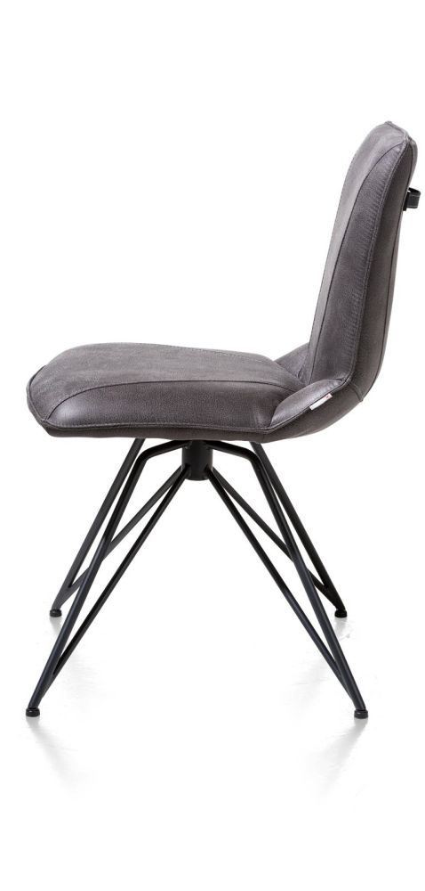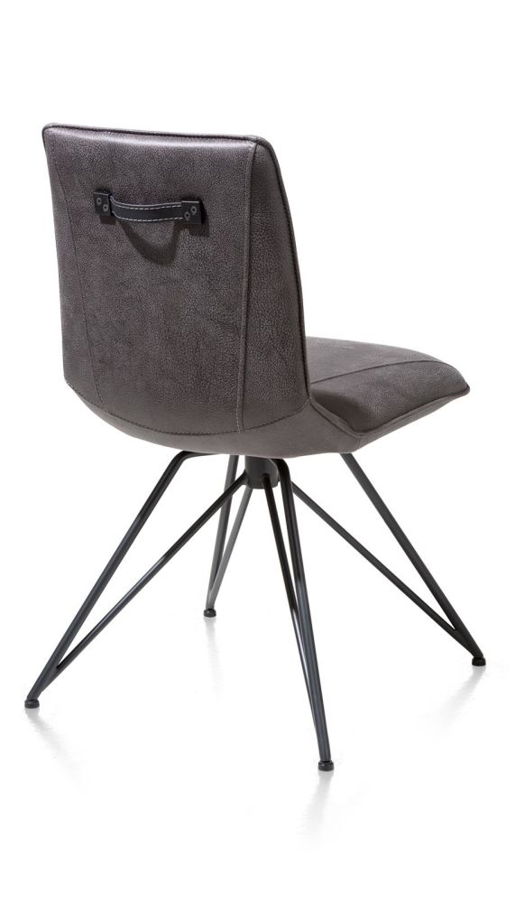 Eetkamerstoel MAC is een stoere stoel met een off black metalen frame als onderstel. MAC is uitgevoerd in microvezel Rocky en heeft aan de achterzijde een handige greep in leder Catania zwart. Hierdoor schuif je MAC er niet alleen heel gemakkelijk bij, maar past de stoel ook nog eens heel goed in moderne, industriële interieurs.