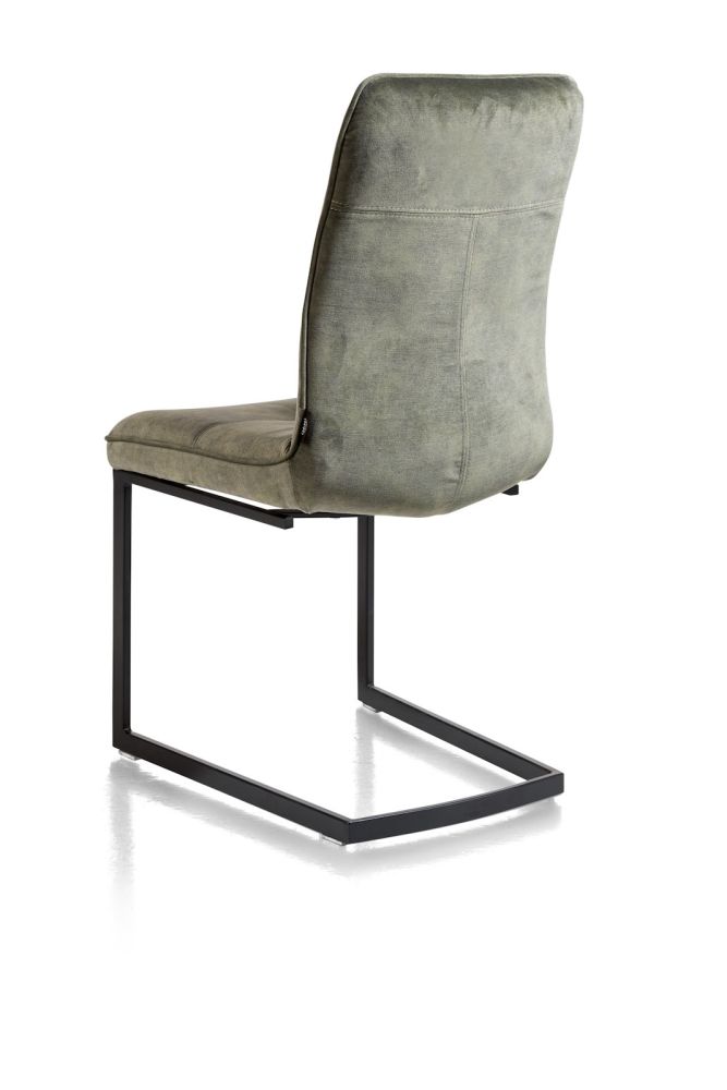 Eetkamerstoel Milva is in verschillende uitvoeringen leverbaar. Deze versie van de eetkamerstoel heeft een stoer zwart swingframe met vierkante lijnen. Hierdoor krijgt de stoel een moderne uitstraling. Voor de handgreep op de rugleuning kan worden gekozen uit zwart of rvs. Opvallend is de optie om de rugleuning met een ander materiaal in een andere kleur te laten bekleden. Zo ontwerp je je eigen unieke eetkamerstoel.