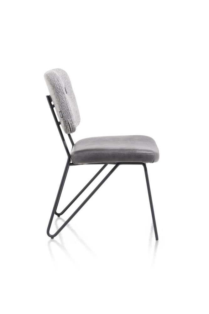 Deze lichtgrijze eetkamerstoel JUNE met zwart metalen onderstel is een ware eyecatcher in elk interieur. En dat niet alleen: dankzij de comfortabele pocketvering zit JUNE ook nog eens heerlijk! De bekleding van de rug en de zit stel je zelf samen. Wat dacht je van deze combi van stof Pala (zit) en stof Cleo (rug) die ook in groen en taupe beschikbaar is? Ook fijn: JUNE is tevens verkrijgbaar met armleuningen!