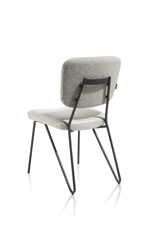 June, eetkamerstoel – frame off black + pocketvering – combi stof Pala (zit) en stof Cleo (rug) – Taupe