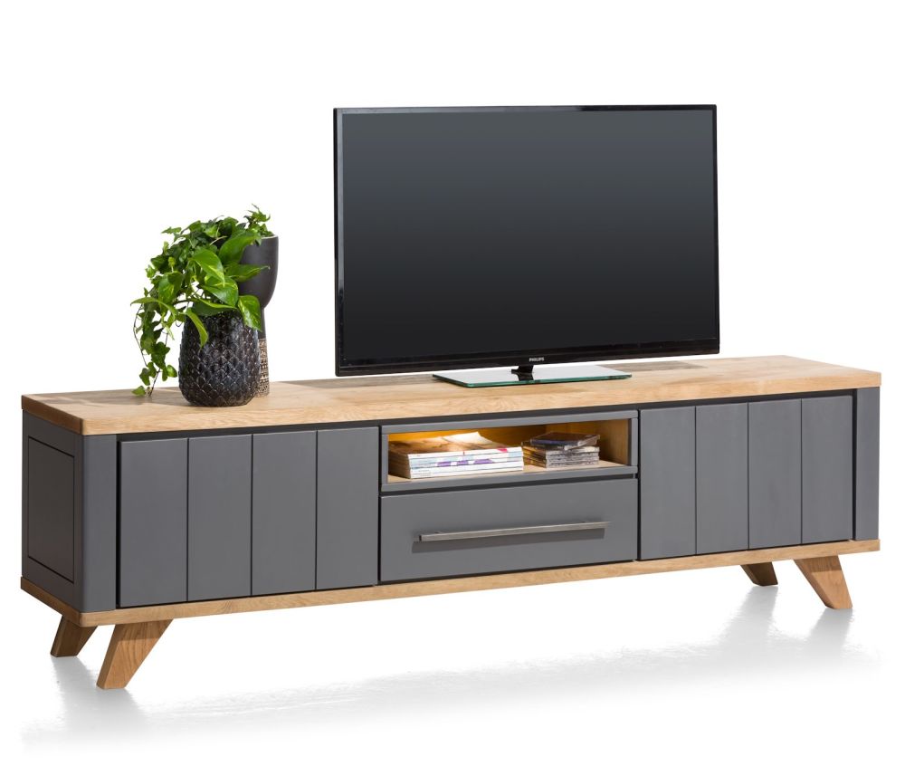 Jardin, lowboard 210 cm – 1-lade + 1-niche + 2-kleppen (+ LED) – Antraciet