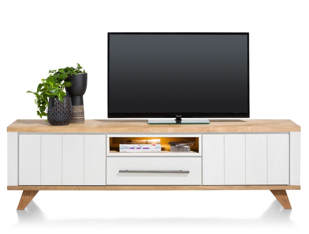 Jardin, lowboard 210 cm – 1-lade + 1-niche + 2-kleppen (+ LED) – wit