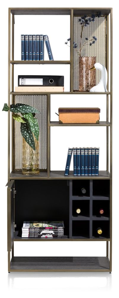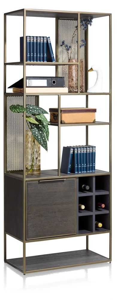 City, boekenkast 70 cm – 1-deur + 6-niches + 6-wijnrekken – Castle antraciet