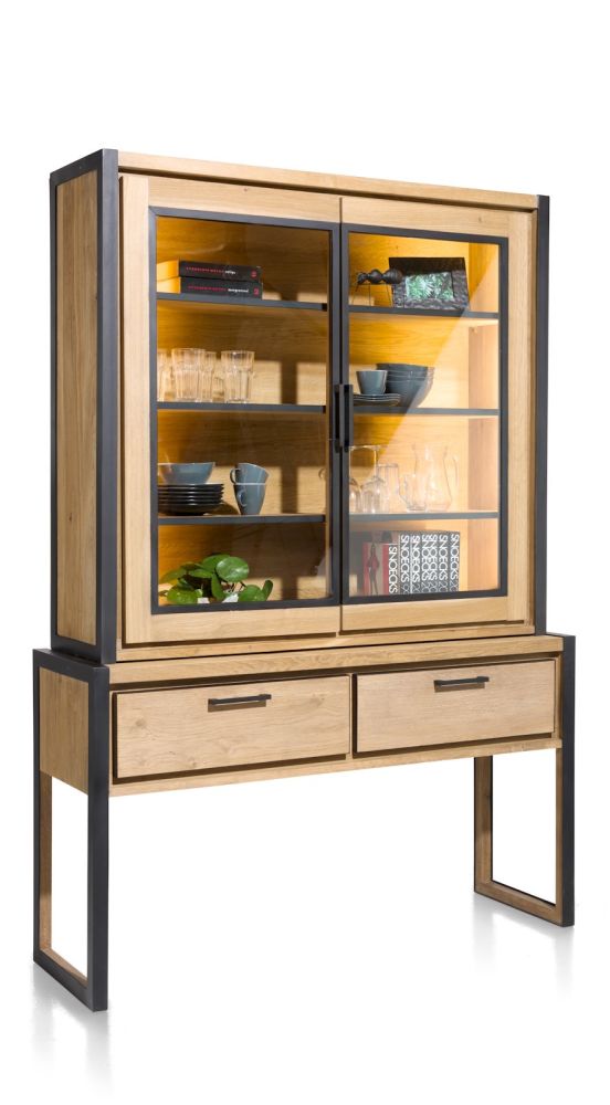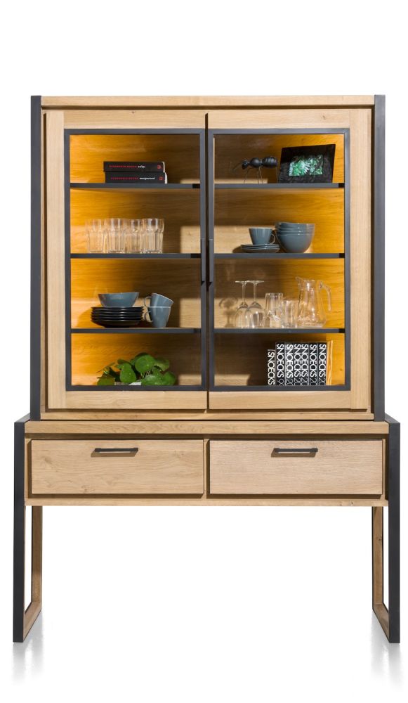 Metalo, buffetkast 140 cm – 2-glasdeuren (+ LED) + 2-laden