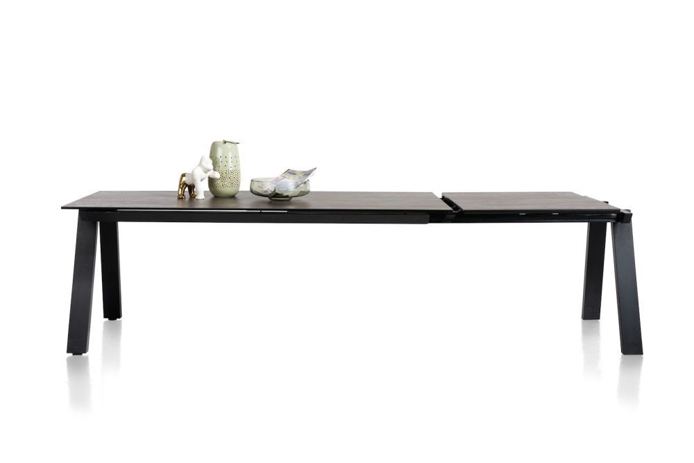 De moderne eetkamertafel Stanford is volledig in de kleur antraciet, wat zorgt voor een luxe uitstraling. De toplaag van het tafelblad is van keramiek, waardoor de tafel tegen een stootje kan. Hij is leverbaar in verschillende afmetingen en als uitschuiftafel. Er bestaat ook een bartafel in de Stanford reeks.