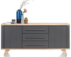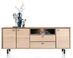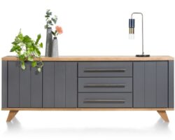 Elements, dressoir 210 cm. – 3-deuren + 2-laden + 3-niches + led – Onyx